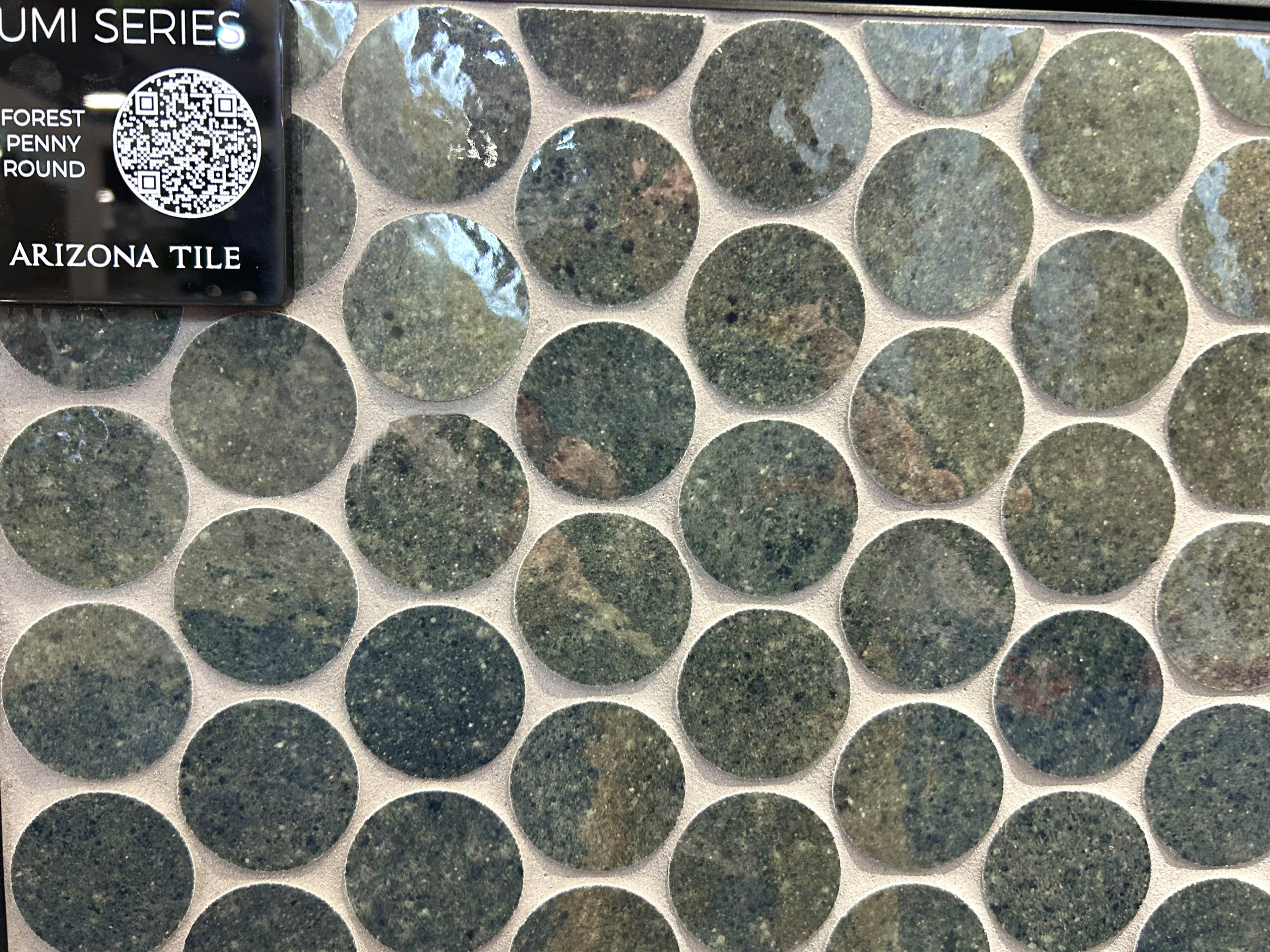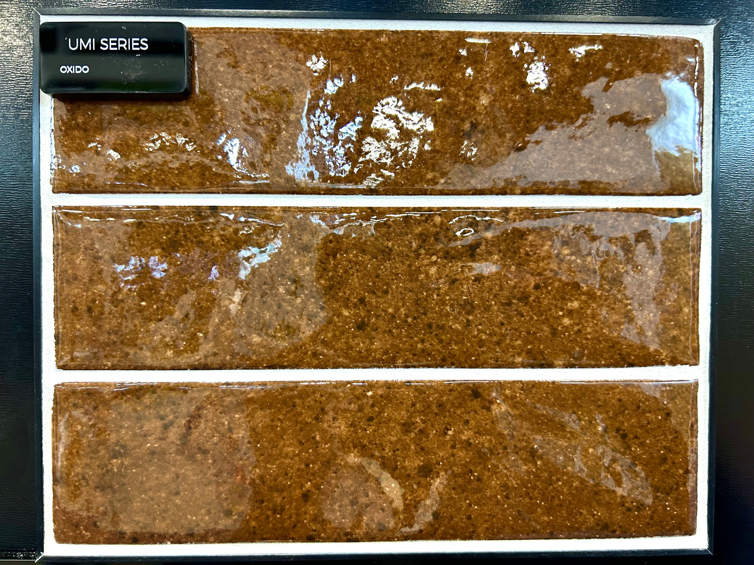 The light-catching Umi porcelain tile in the Oxido color from Arizona Tile has realistic stony flecks on a goldish-brown background. It’s part of a new collection with six earth tone colors that includes a 2¼-by-9½-inch rectangle, 2-inch penny round and 6-inch hexagon. Umi will be available this spring.