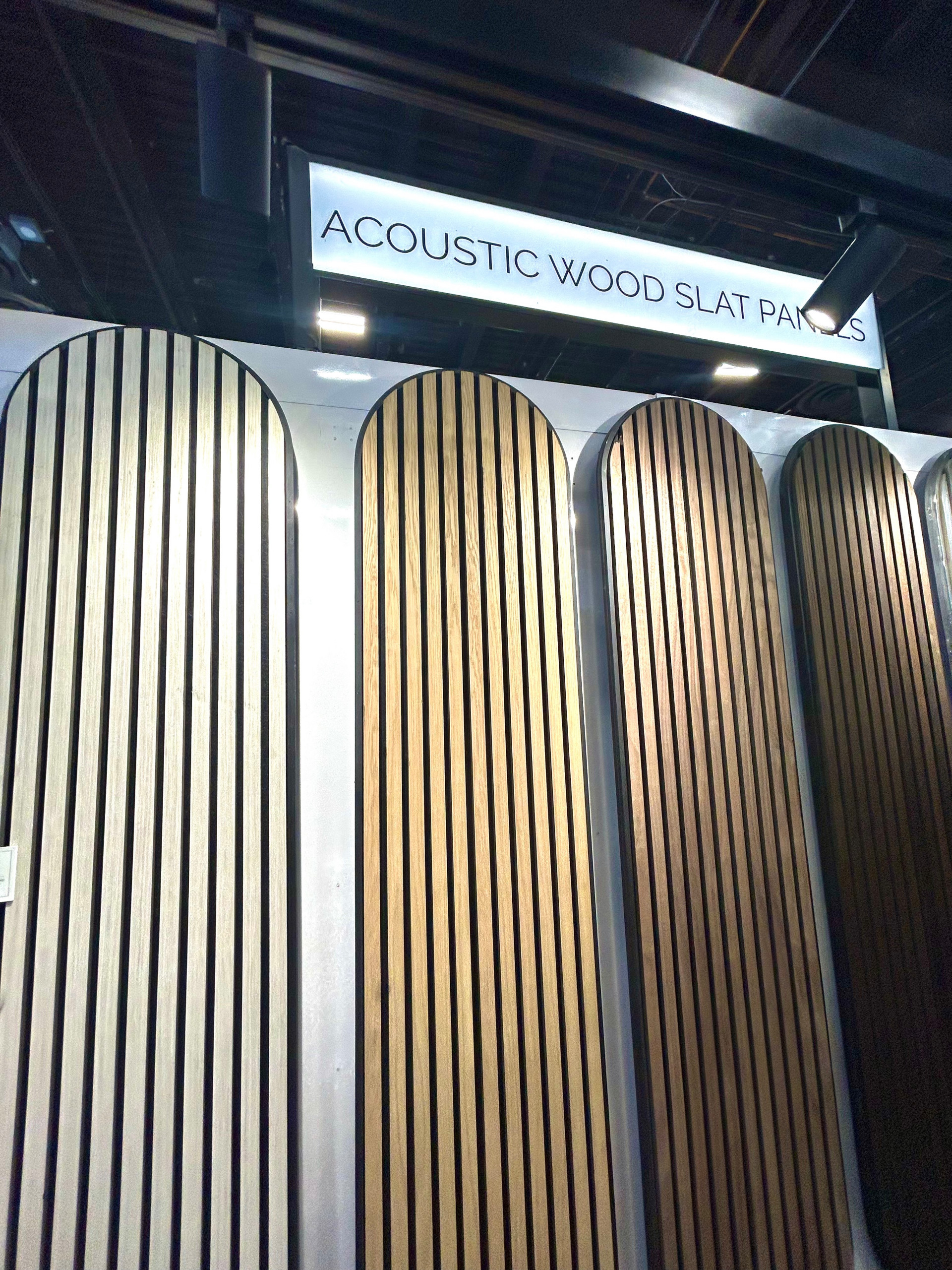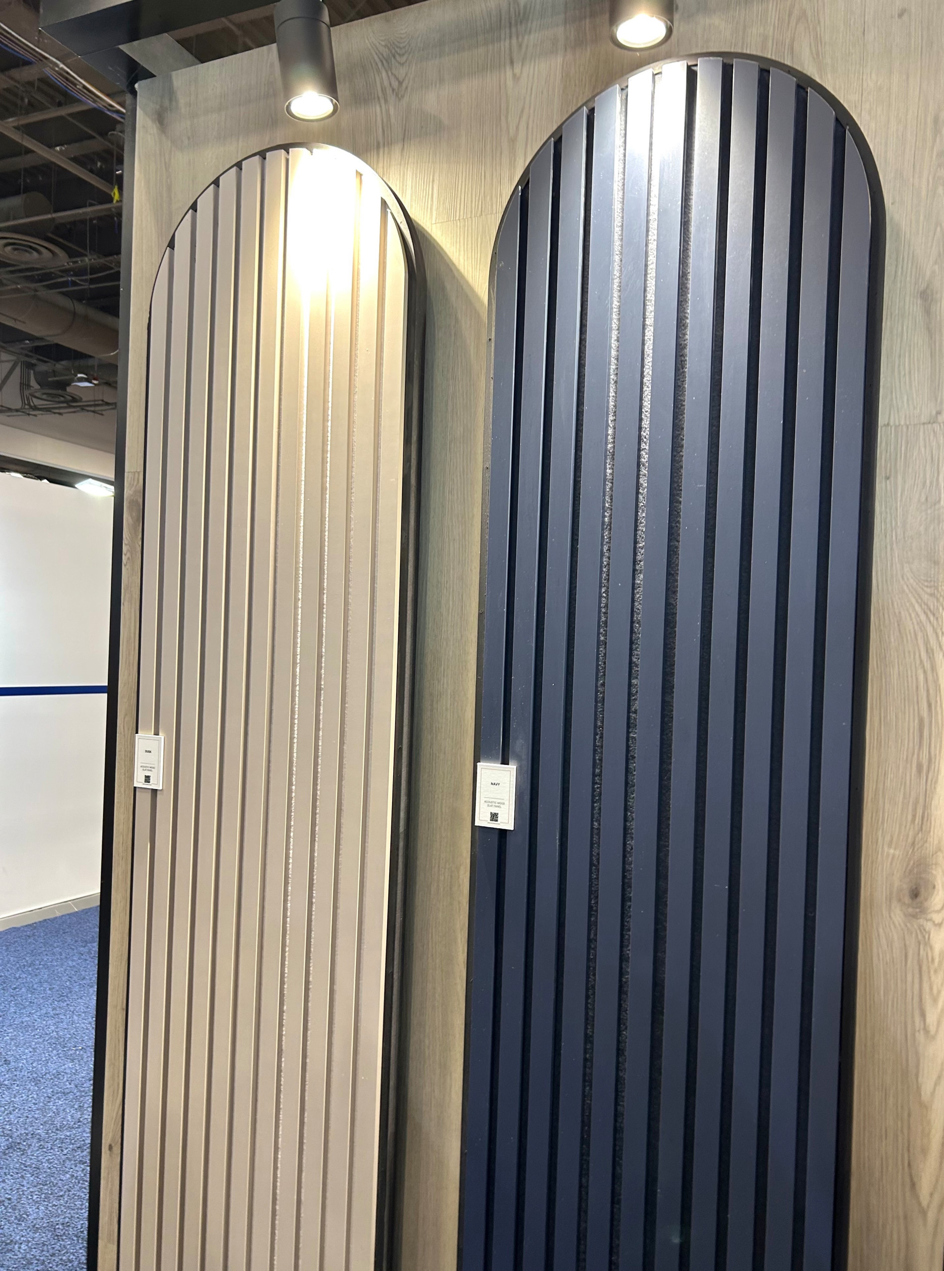 Wood slats showed up in a number of displays, including MSI’s Acoustic Wood Slats collection, which has several new colors of natural wood panels, in addition to new painted, reeded and macro wider-slat panels that debuted. The panels measure 10.63 by 94.5 inches and 9½ by 94½ inches. They’re simple to install and their sound-absorbing qualities are perfect for media rooms and as accents behind televisions and beds, says MSI’s Fallon Crawford.