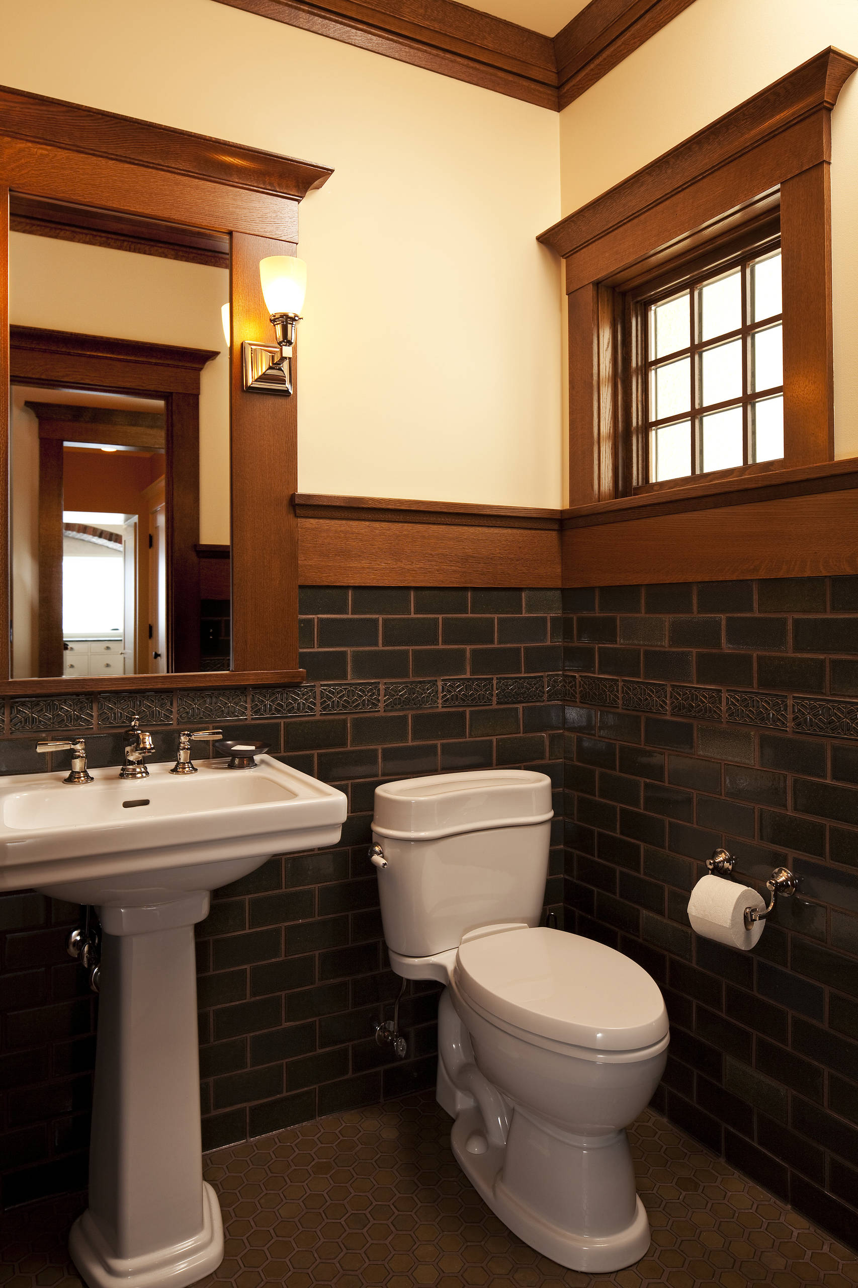 8. Craftsman. While this style is a bit more niche than the previous examples — you’ll probably want to have a Craftsman-style home to have a truly Craftsman-style bathroom — there are elements worth considering for any space. Handmade tiles, dark stained wood and attention to quality are all things that can make a bathroom shine.