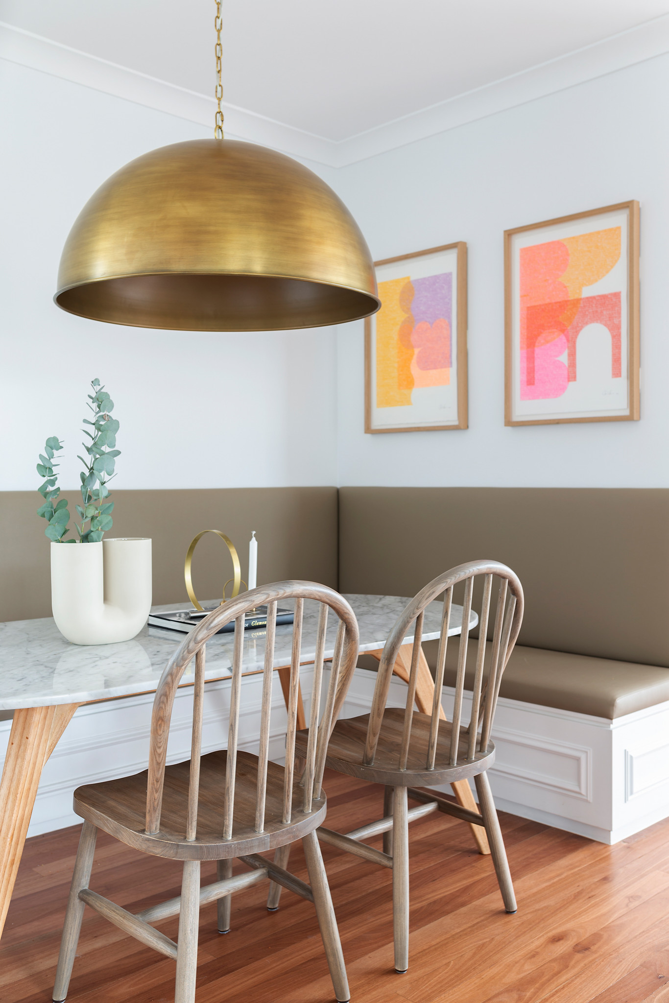 To get the best of both worlds, mix some wood chairs with upholstered seats at each end of the dining table, or use a banquette along one side.