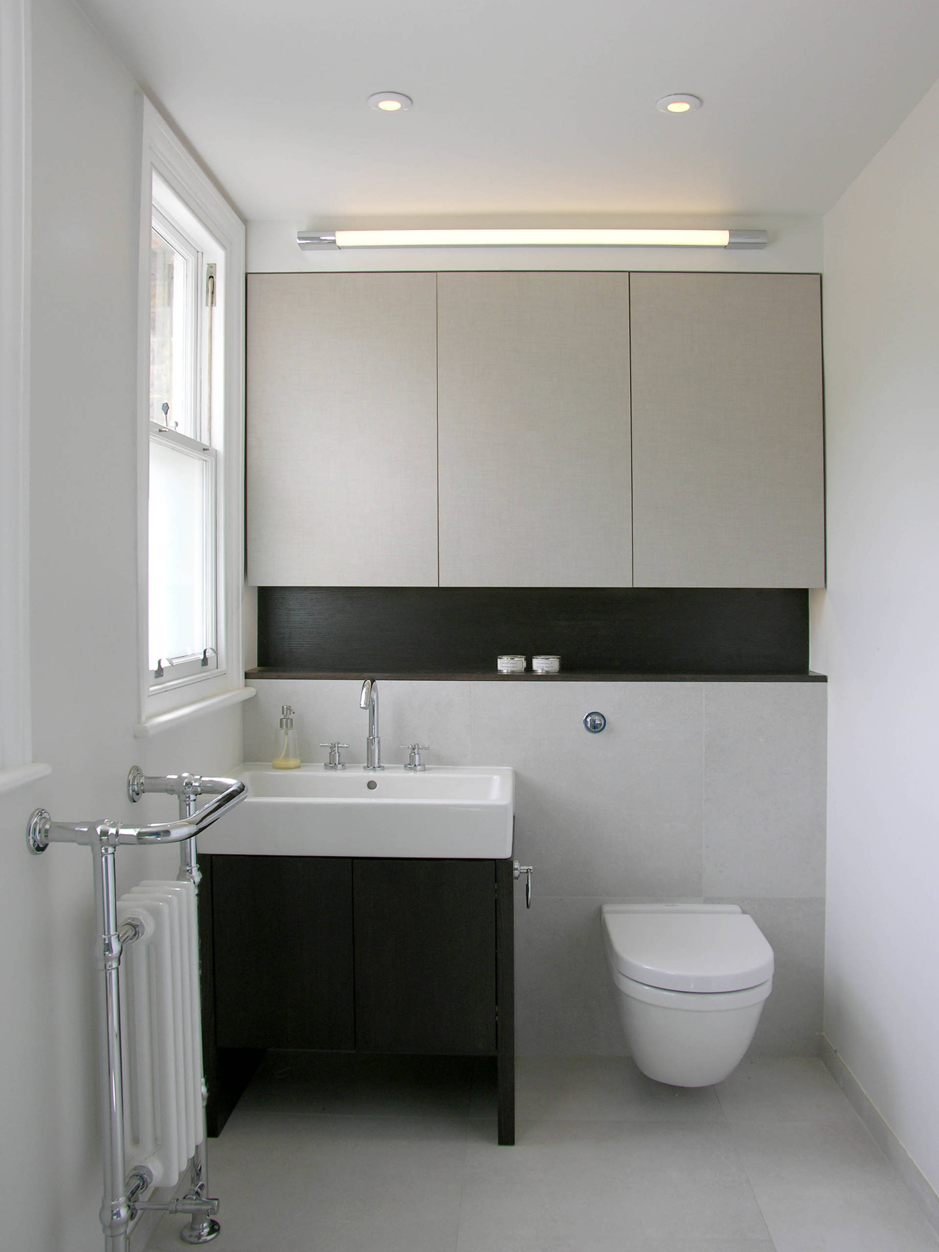 If you’re adding a toilet with the tank behind the wall, take advantage of the necessary pipework to create a useful storage unit.