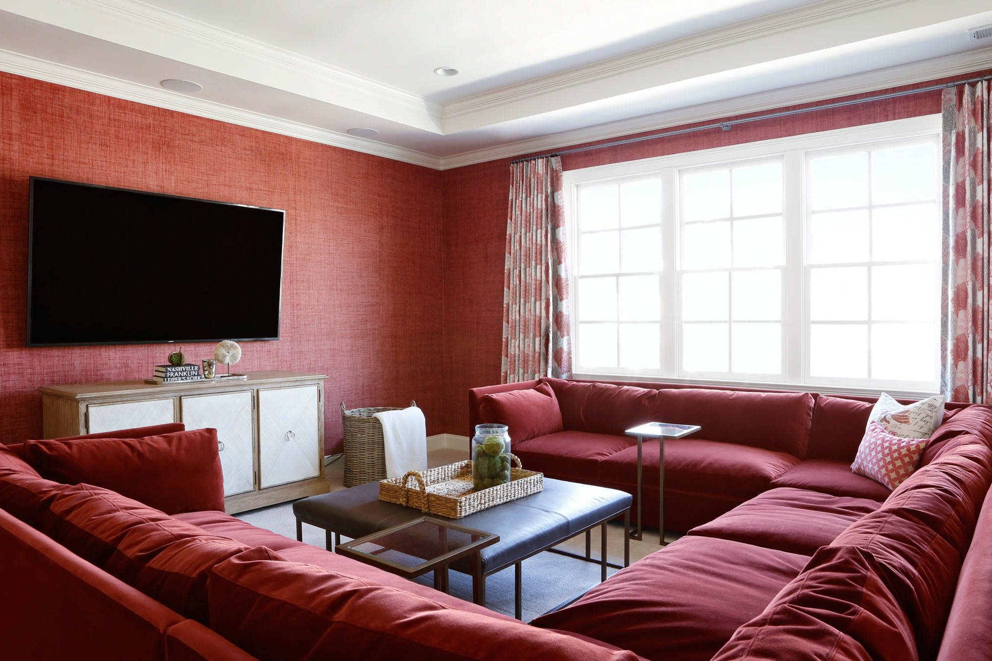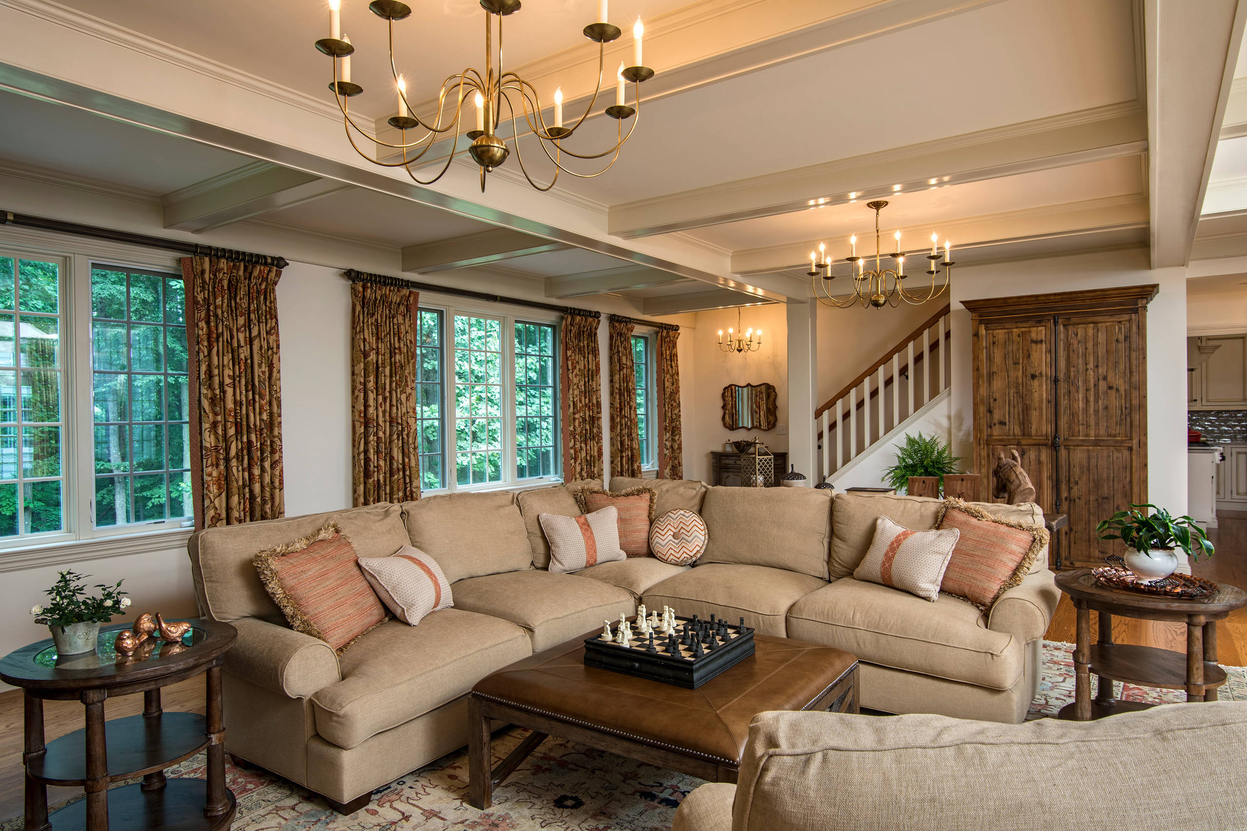 That doesn’t necessarily mean a smaller space can’t accommodate something larger like a sectional. In fact, a thoughtfully configured sectional may be the most efficient solution for a compact area.