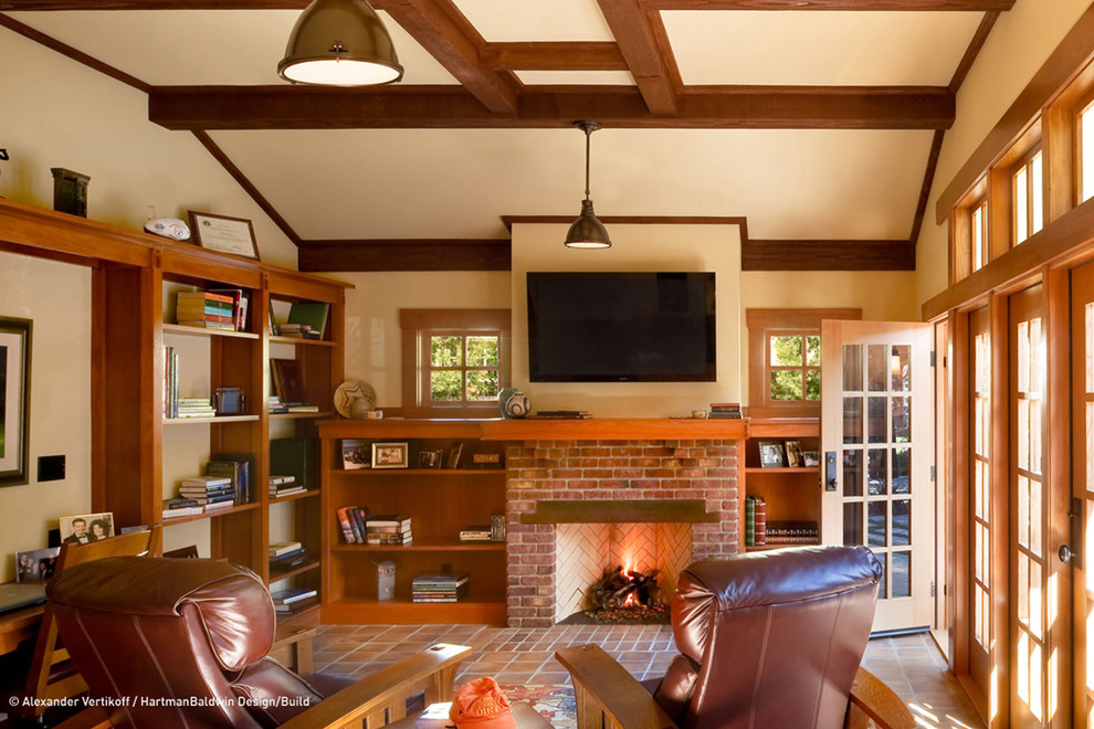 Karla Rodriguez, head of marketing at HartmanBaldwin, says the owner of this detached studio in Claremont, California, had spent his whole life living in a space designed by his wife, and he wanted his own space where he could reflect, read and write.
