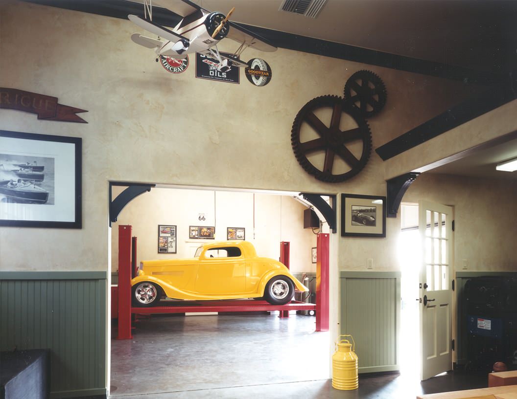 The owner of this Tudor-style house, also by HartmanBaldwin and in Claremont, California, built his fortune through manufacturing and had always wanted a place where he could tinker (he also earns a lot of patents) and restore classic cars.