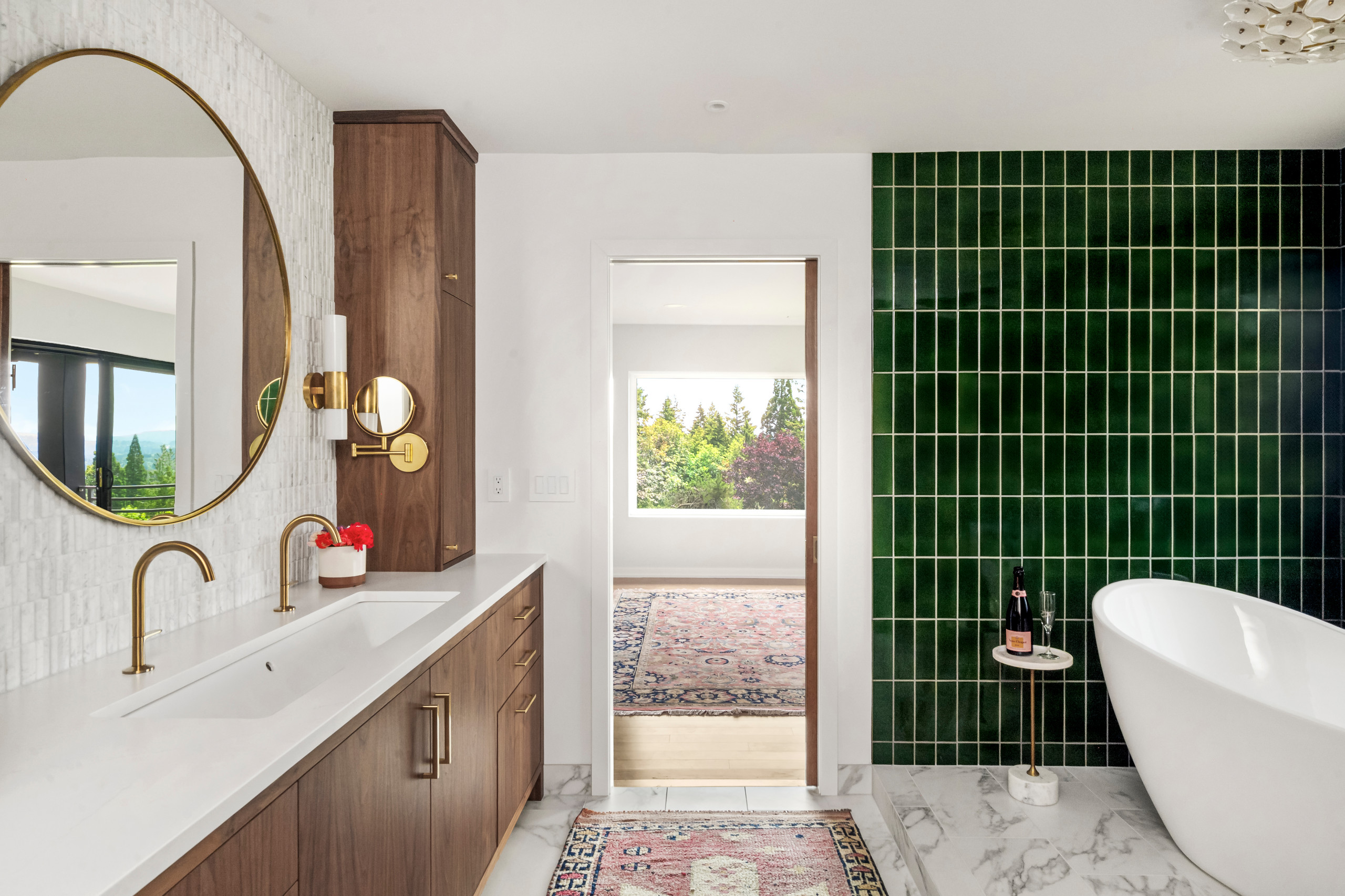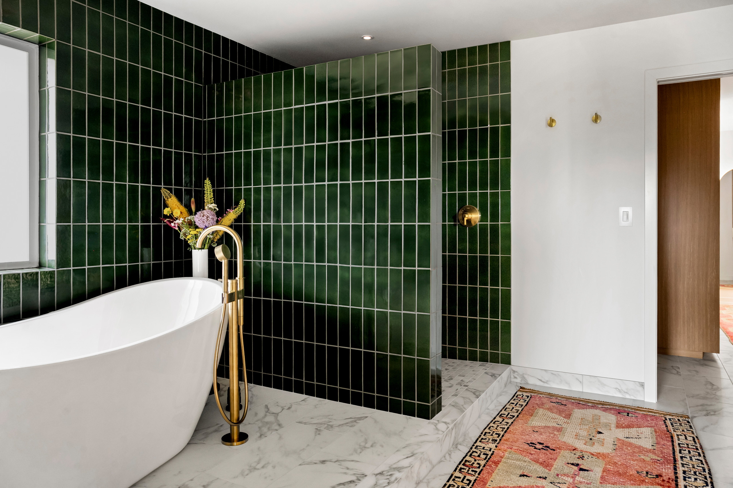 Wood, White and Green Bathroom With a Bold Surprise