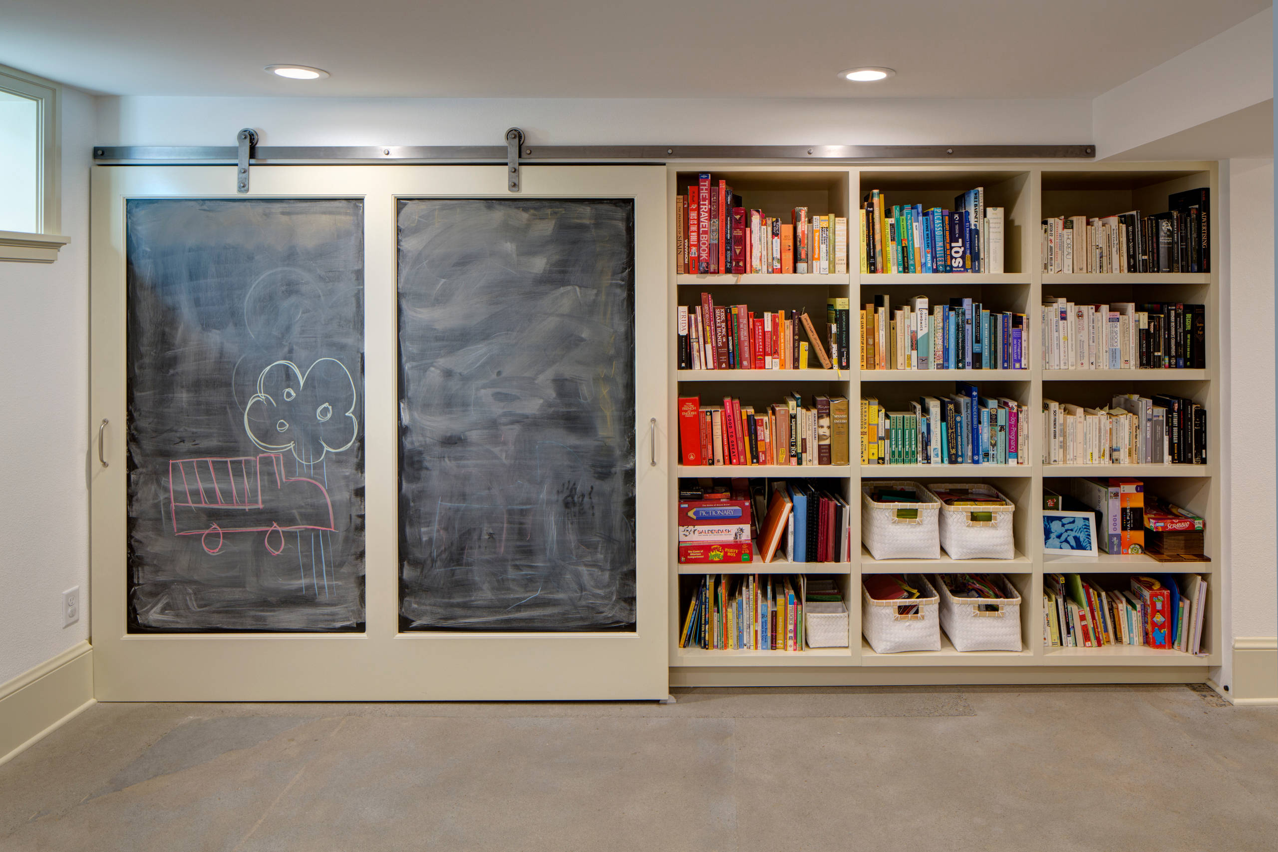 In this home in Portland, Oregon, general contractor Hammer & Hand and architecture firm Polymath Studio put a personalized twist on the barn door trend with an inlaid chalkboard for the family’s young children. The pro team also connected upstairs and downstairs by tapping into the historic character of the rest of the house. Custom-milled baseboards match the house’s traditional trim. “It’s a small touch that goes a long way towards achieving a smooth integration with the existing home,” Hammer & Hand senior builder Mac Casares says.