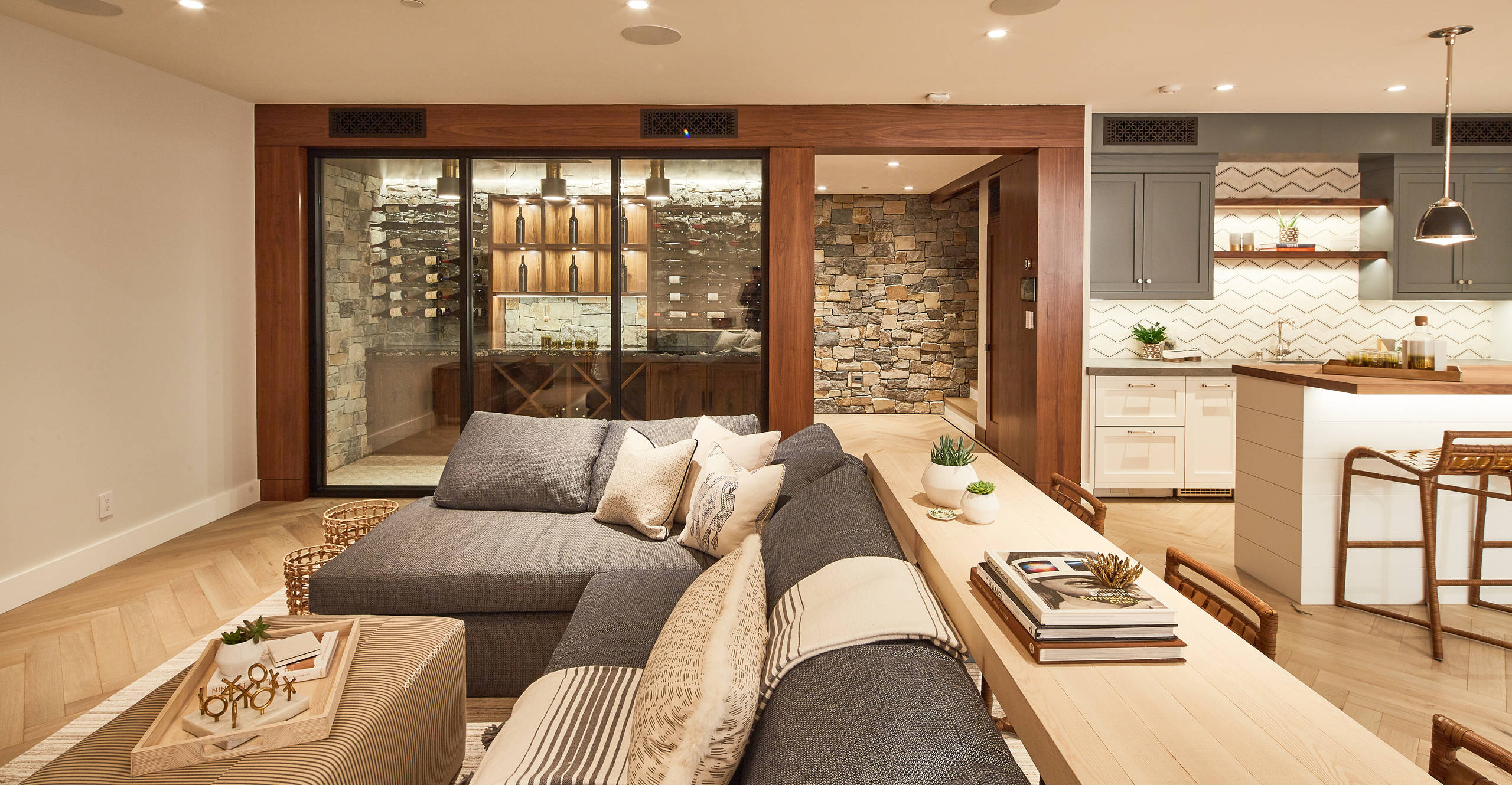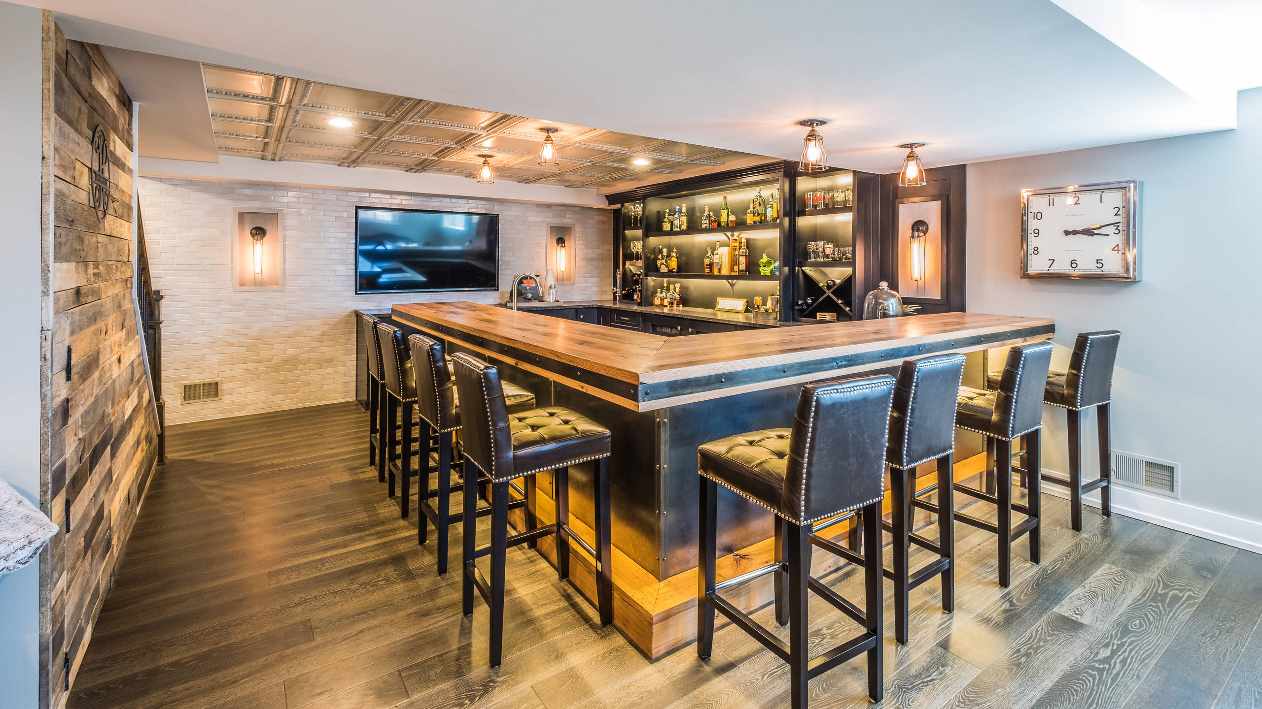 How to get the full-out look. Deliberately adjustable anchor details like Murphy beds and untethered bars or dining tables make it easy to transform a basement again and again to meet your specific needs.