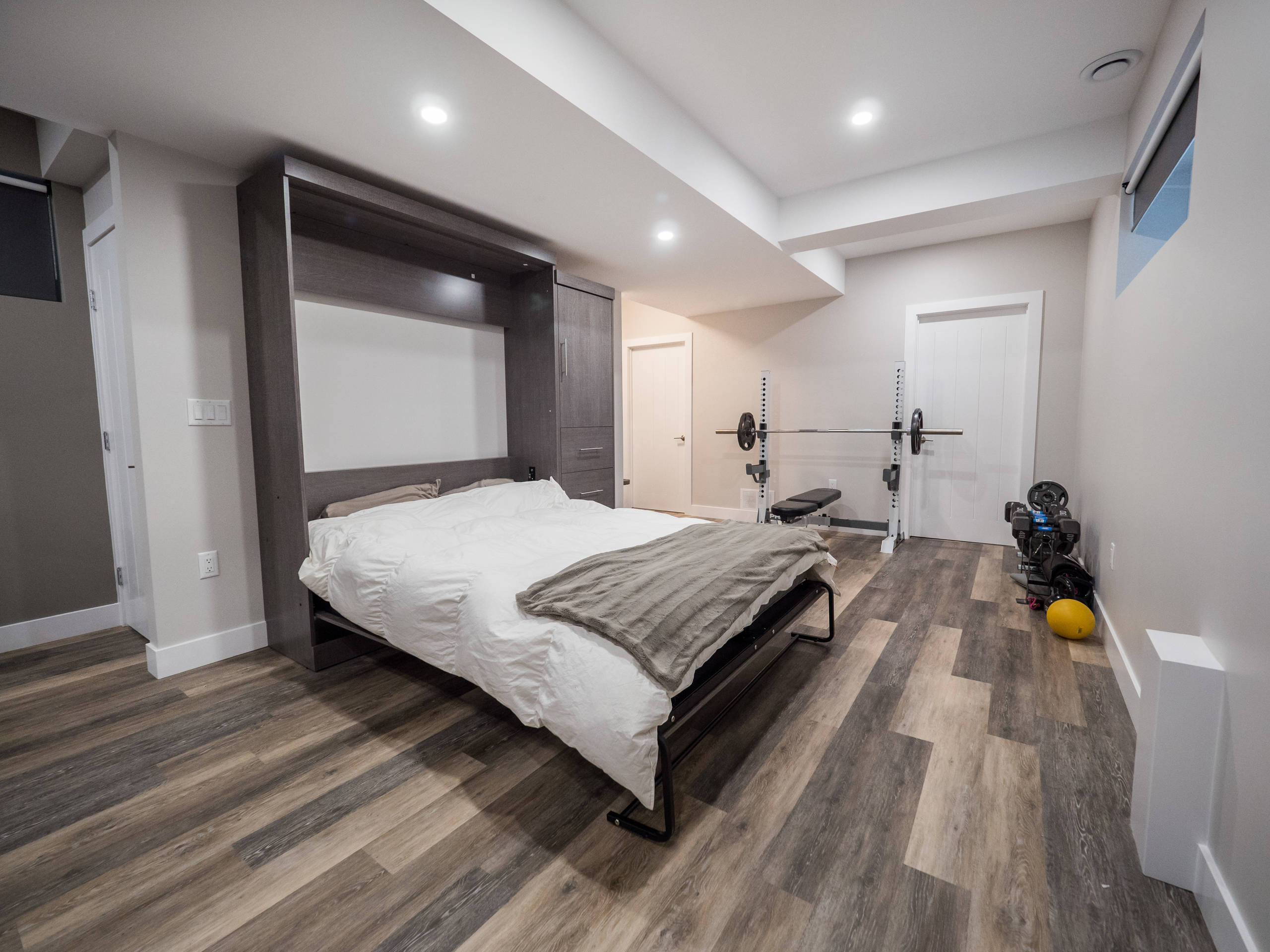 What popular Houzz photos say. Multiple photos of this basement remodel in Edmonton, Canada, were among the most-saved basement photos on Houzz in recent months. The space — which includes convertible areas for lounging, working out and (thanks to a Murphy bed) sleeping — is a fitting example of homeowners’ push toward basements that can serve more than one purpose.