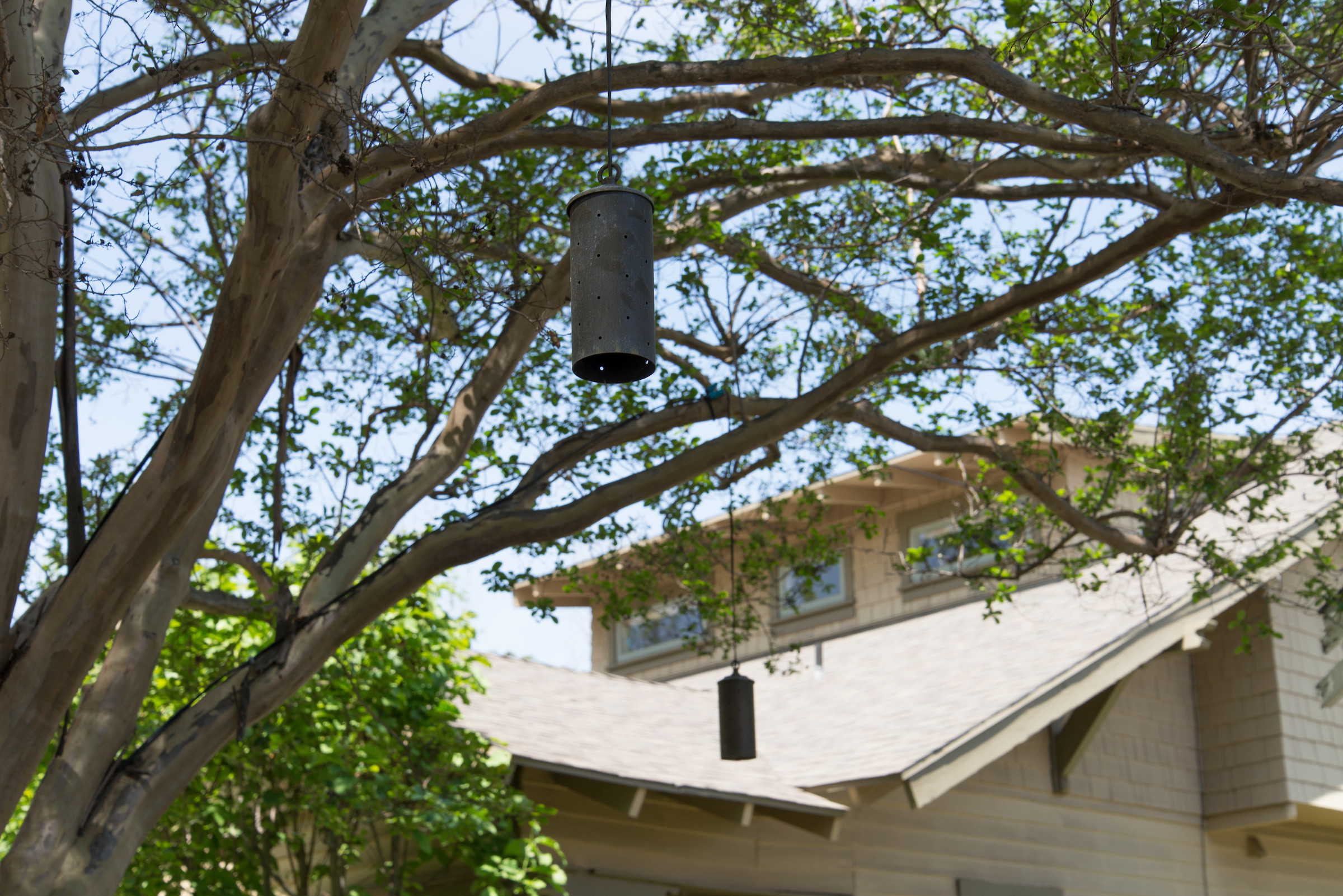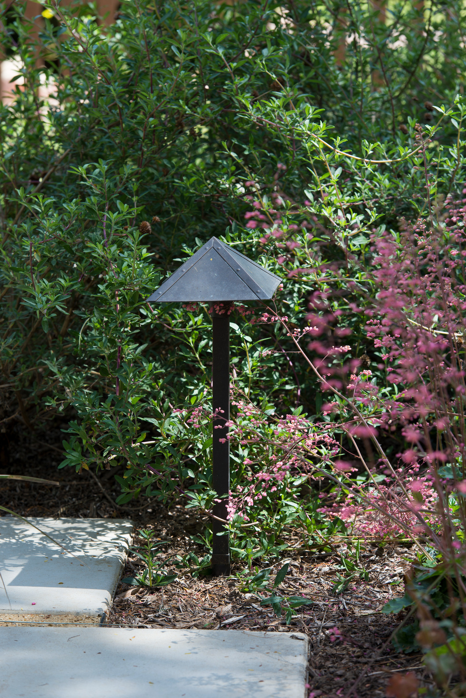 New outdoor lighting extends front yard enjoyment into the evenings. Instead of filling the space with spotlights and uplights, the team aimed to minimize light pollution and nocturnal wildlife disturbance with low path lights and lights with shades. “We added lovely hanging lights in the crape myrtle that cast a soft, twinkly glow to the garden at night, and path lighting for safety,” Scott says.