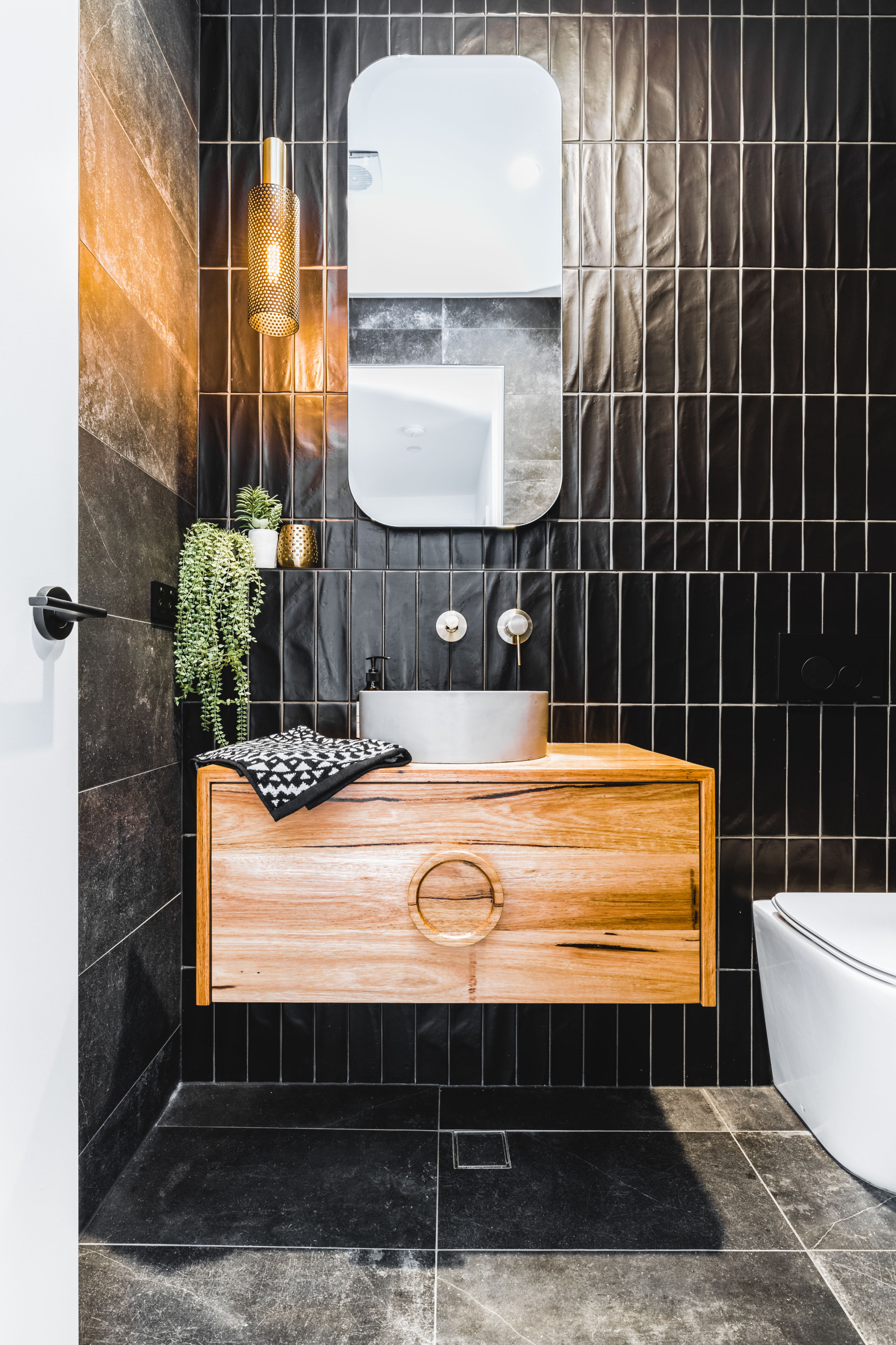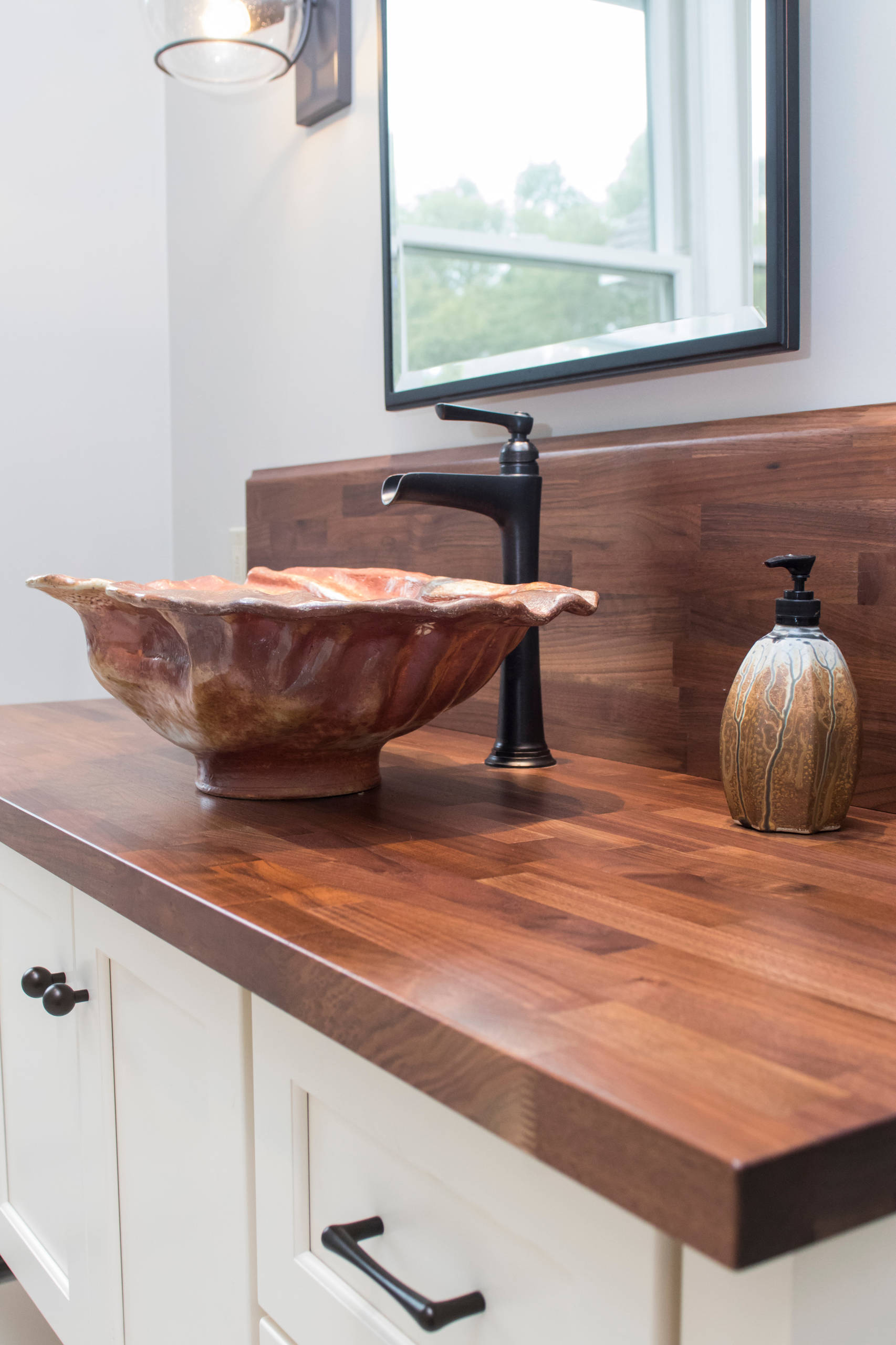A low spout with a short projection can make it difficult to wash your hands, let alone anything else, or cause you to slop water behind the faucet. But pairing such a spout with a petite basin can come in handy where space is tight. A high spout with a shallow sink can make for excessive splashing. A vessel sink like this one often takes a faucet with an extra-tall spout to reach over the rim.