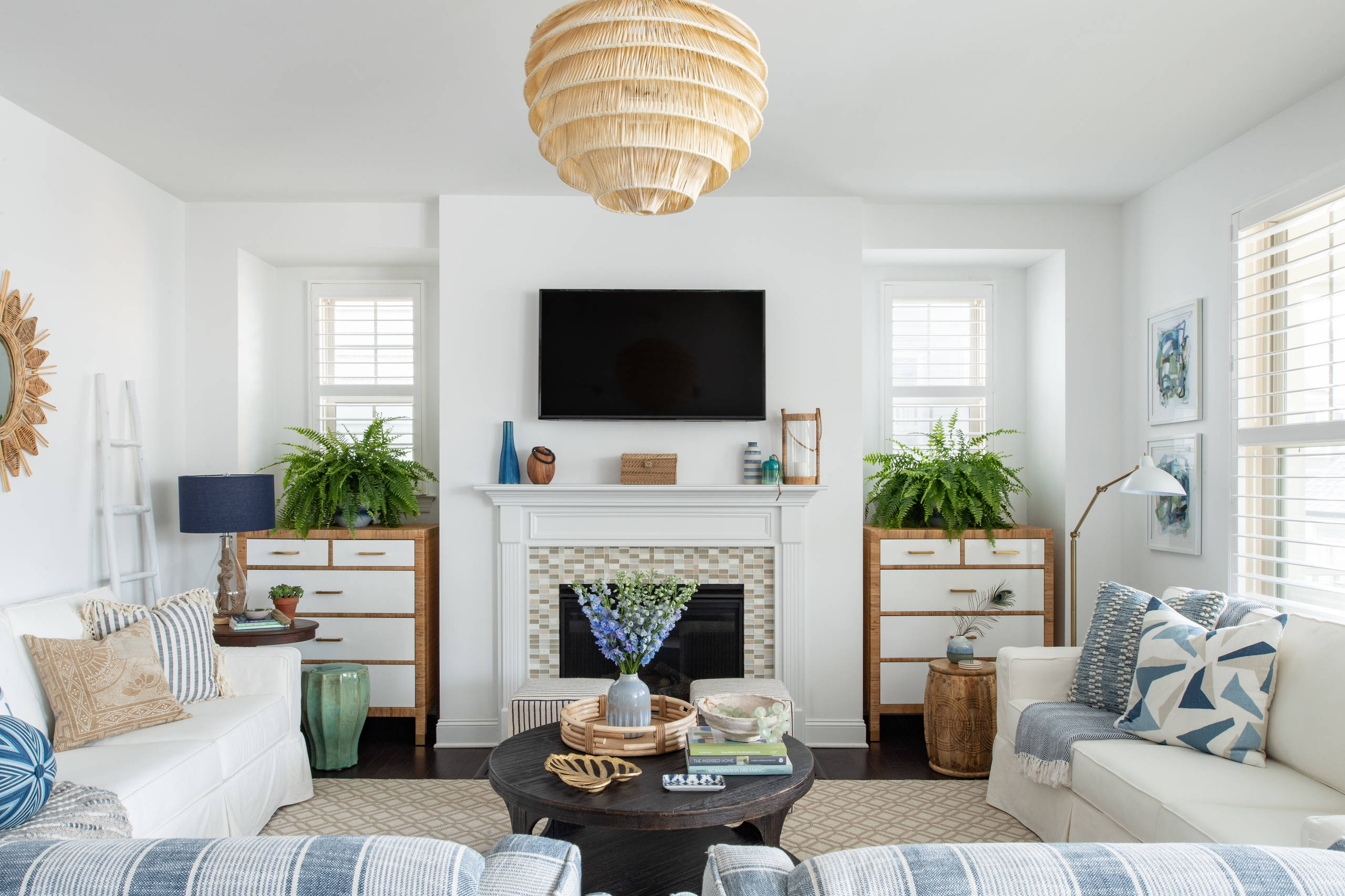 Coastal homes gather inspiration from the colors of sand, sky and sea. White is a popular choice for walls, making a crisp backdrop for furniture and decor in shades of blue, sea green and sand, though it’s certainly not the only option. Natural materials and textures also look right at home in a beach-style space — think of nubby jute rugs, wicker, rattan, sturdy canvas and fine linen.