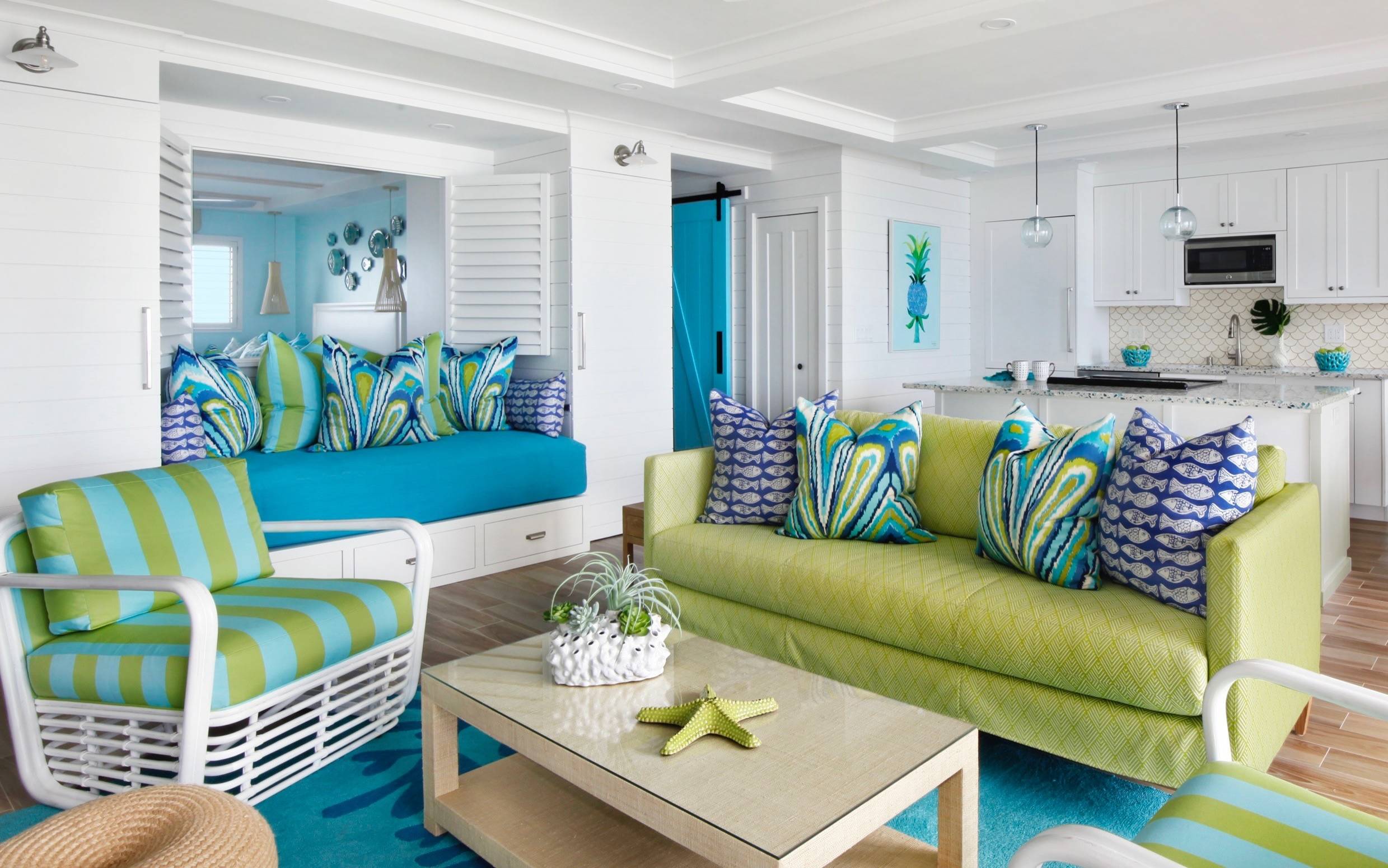 There’s no need to display seashells in a beach-style home — just think breezy and summery, and you’ll hit the right note.