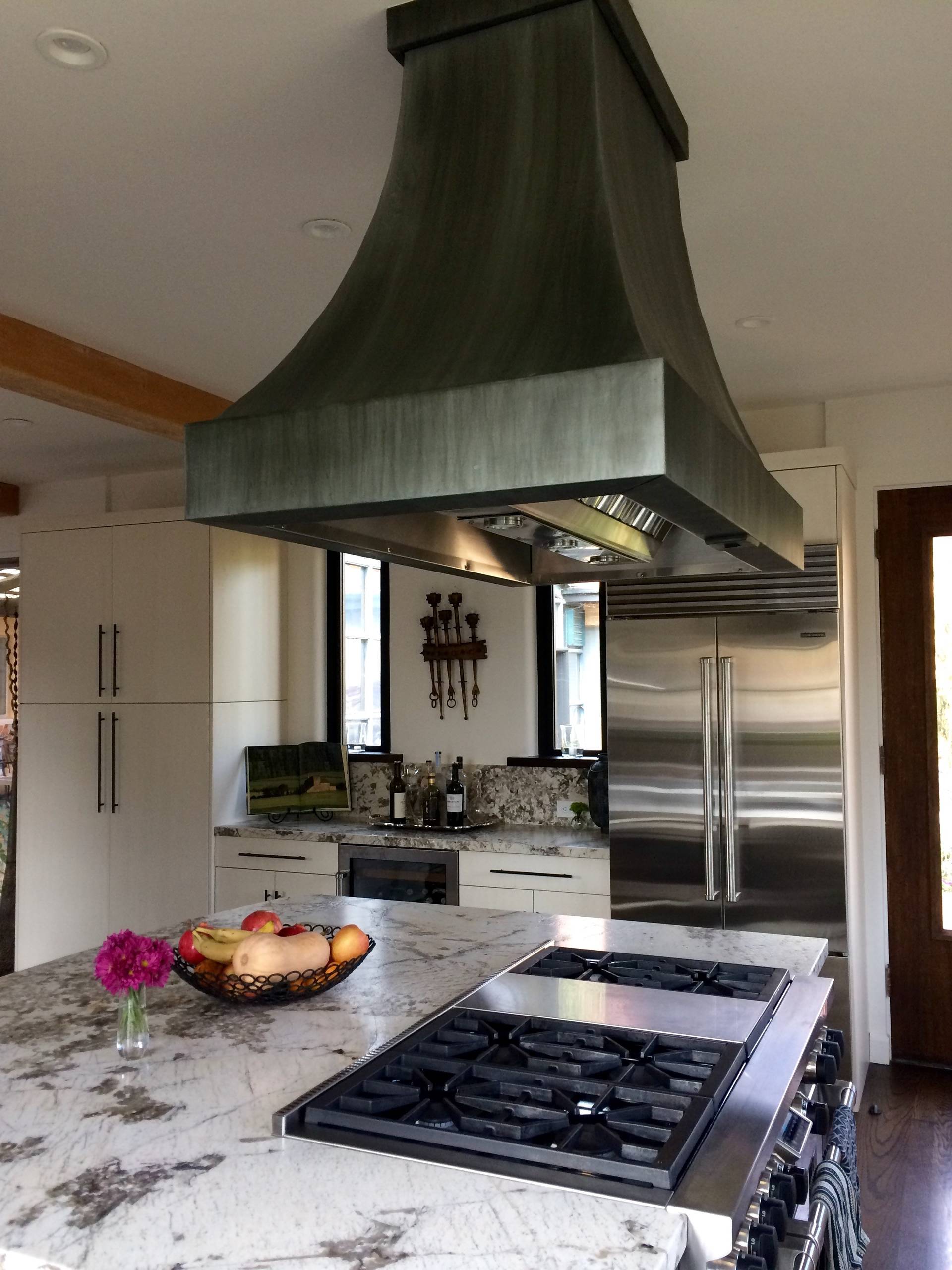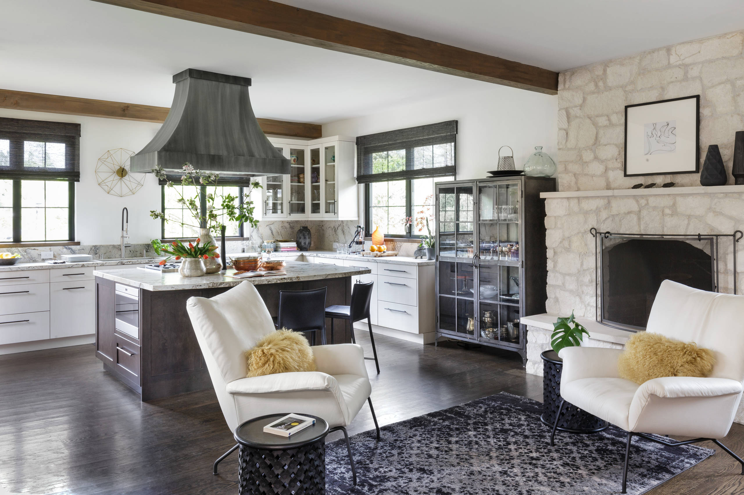Zinc Range Hood and a Limestone Fireplace Create a Timeless Look