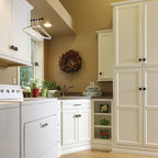 Another great place for a rollout is in the cabinet underneath the sink, as shown here. Often, plumbing gets in the way of seeing (and using) all the space in this area. A rollout helps eliminate this problem, making much of the space below easily accessible.