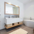 Looks great and a good fix to architects plans which has no storage at any bathroom sink. Who built it for you all?