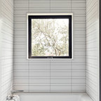 This bathroom by De Meza + Architects gives black and white a fresh new look with custom mosaic tile.