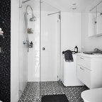 Inspiration for a contemporary multicolored floor freestanding bathtub remodel in Los Angeles — Houzz