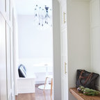 Elegant kitchen photo in Cincinnati with shaker cabinets, white cabinets and an island — Houzz