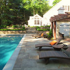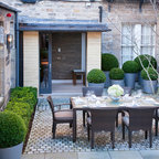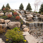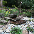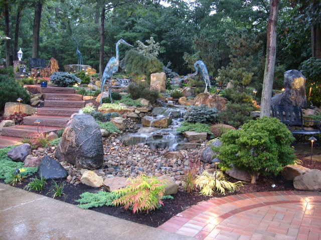 This is an example of a mid-sized traditional full sun backyard brick water fountain landscape in Cleveland. — Houzz