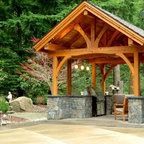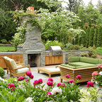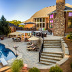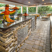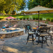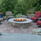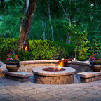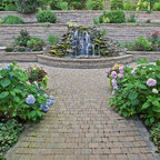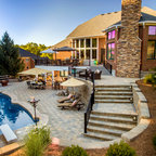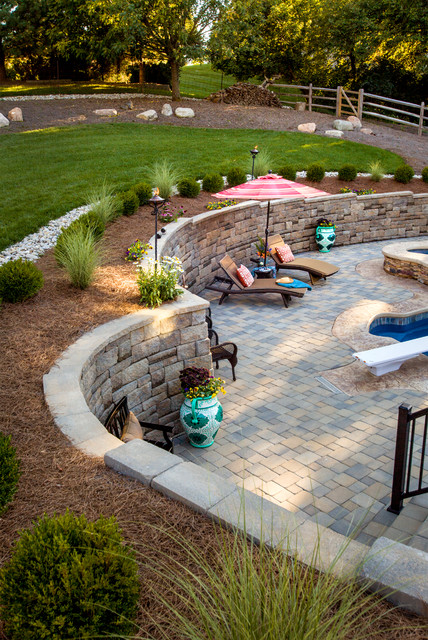Huge transitional backyard stone patio fountain photo in Cincinnati with no cover —  Houzz