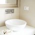 Inspiration for a contemporary white tile porcelain floor and gray floor bathroom remodel in Bologna with light wood cabinets, a vessel sink, white countertops, flat-panel cabinets and gray walls — Houzz