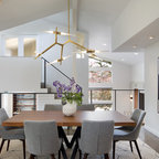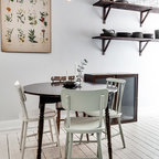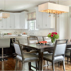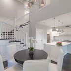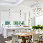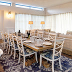 Example of a large coastal carpeted and gray floor dining room design in Gold Coast - Tweed with white walls — Houzz