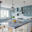 Beautiful blues and greens set this kitchen apart from all the rest. This is a custom kitchen from Dutch Made.