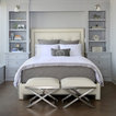 7. Built-in personality. This inviting bedroom has staying power thanks not only to architectural details like the built-in shelves, which give rooms a classic feel, but also thanks to the design choices. Solid bedding in neutral grays and white, along with a bed frame and benches in warm cream, creates a more enduring color scheme. Also, the accessories decorating the shelves are a mix of personal mementos, books and decorative items. Using this blend helps the room avoid looking decorated just to follow a trend.