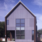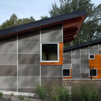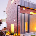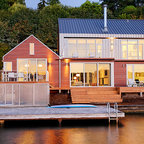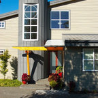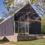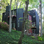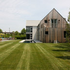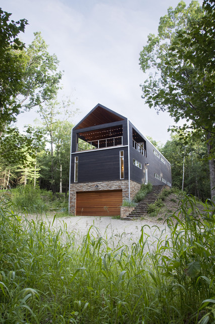 When your driveway is half a mile long and none of your neighbors are within plain sight, the idea of a front or back door can safely go out the window. "When guests pull up the driveway, they usually use the door at the top of the stairs as the main entrance," says Gotlieb."The barn house fits in with its surroundings more than most of the other homes in the area, which are mostly cookie cutter houses," says Gotlieb.