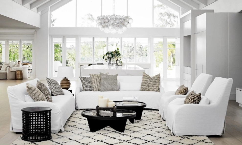 One of the top 10 living room design mistakes I make is to place tall-backed Hampton style sofas across the room, a mistake that really cramps the style of the whole space. It happens way too often.