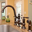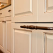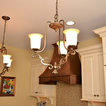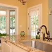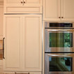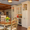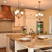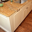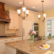 The cabinet doors are Brookhaven's Edgemont Square Raised Panel doors in an Antique White Paint with Espresso Glaze. The counter is "Exotic Tobacco" granite.