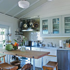 The stools are an integral part of this cottage kitchen's collected aesthetic.