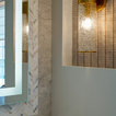 This luxury bath reworked the entire previous floor plan. This space is now home to separated vanities, an enclosed commode, and spacious spa-like shower.
