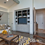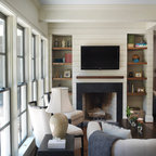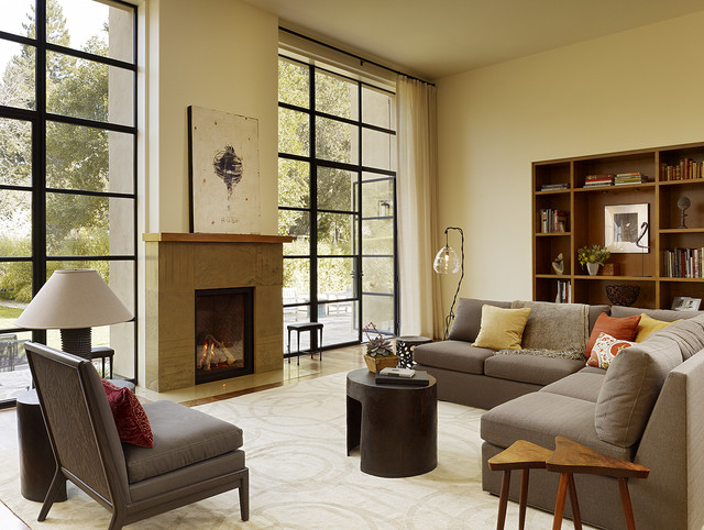 Example of a transitional living room design in San Francisco with a concrete fireplace — Houzz