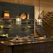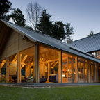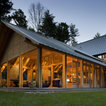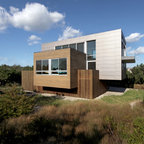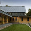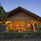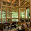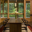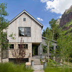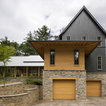 Charisma in Charlotte Arriving at a very different result, but using many of the same techniques as in the previous project, this home in Charlotte, North Carolina, proudly exhibits the means of its making. Again the fine details, the joints, play a prominent role in unifying the distinct components of the building. Set in a neighborhood with an aesthetic code for design that was at odds with the client’s directive for a structure that was light, open and airy, the architect devised an ingenious solution. He oriented the restrained and familiar gable volume toward the street, grounding it on a heavy stone base, and developed a more unrestrained and open pavilion to house the public living areas and the porch toward the rear.Articulation. At the entry facade, the base middle and top have each been articulated to reduce the scale and accentuate the first and second stories. The reverse board and batten siding is further broken by a belt line of trim at the second-floor windowsills rather than at the second-floor line. This reduces the apparent scale of the two-story volume facing the street, making it feel like one and a half stories. It’s a visual trick accomplished via a simple shadow joint that’s particularly effective on tall walls.