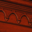 Mid-sized elegant galley medium tone wood floor eat-in kitchen photo in Cincinnati with an island, a double-bowl sink, dark wood cabinets, wood countertops, beige backsplash, stainless steel appliances and recessed-panel cabinets — Houzz