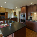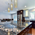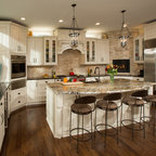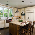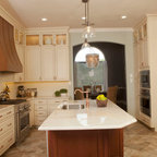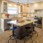 Painted Cream with Brown Glaze Cabinets with Giallo Granite Countertops ~ SevillTransitional Kitchen, Cleveland