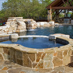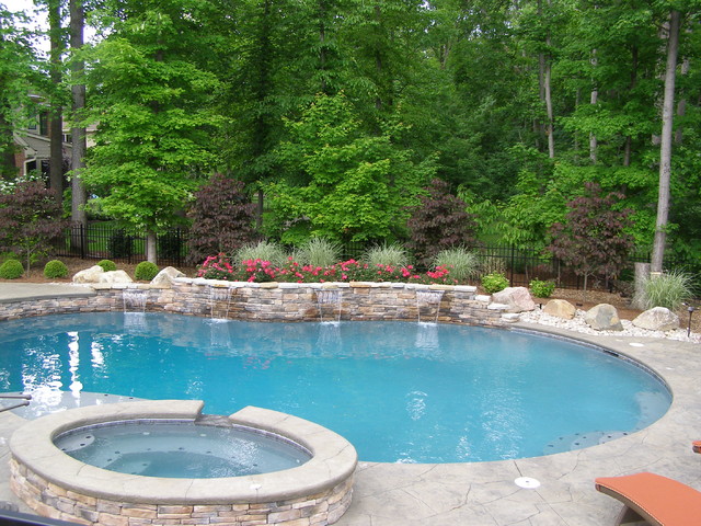 Inspiration for a mid-sized timeless backyard stone and kidney-shaped aboveground hot tub remodel in Cincinnati — Houzz