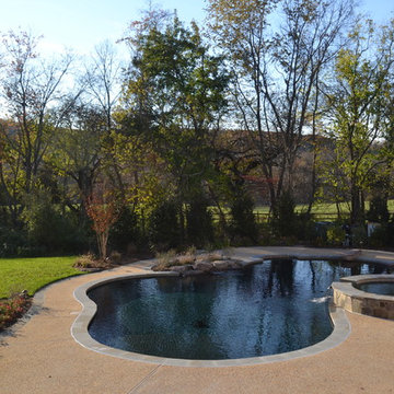 New pool built by www.custompoolsbybarry.com with raised wall & sheer descent waterfall in Weisenberg Township, Lehigh County, PA