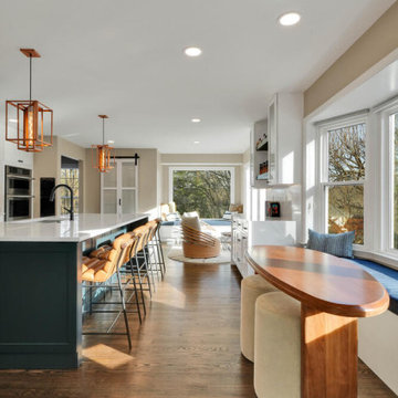 Scott Zimmerman, Modern kitchen with walnut cabinets and quartz counter top.