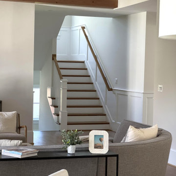 Mid-sized transitional wooden straight wood railing staircase photo in Tampa with painted risers
