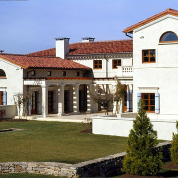 Elements used: Encaustic Tiles, Antique Limestone, antique stone fountain, antique stone fireplace.