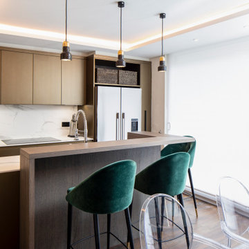 Every inch of space in the kitchen is integrated with each other which leaves no room for error and presents a flawless design execution.
