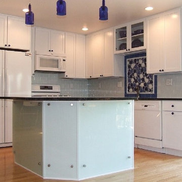 This project won in the 2013 Builders Association of Metropolitan Pittsburgh Housing Excellence Award for Best Urban Renewal Renovation Project. The glass bowl was made in the glass studio owned by the owner which is adjacent to the residence. The mirror is a repurposed window. The door is repurposed from a boarding house.