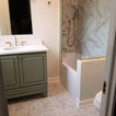 Chicago isn’t known for spacious bathrooms, especially in older areas like Ravenswood. But we’re experts in using every inch of a condo’s limited footprint. With that determination, this mini master bath now has a full vanity, shower, and soaking tub with room to spare.