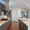 Simple sophisticated contemporary style. This custom cabinet is a simple slab door with a small trim at the edge.