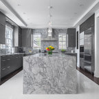 Carrara backsplash gray cabinets