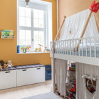 Inspiration for a transitional light wood floor and beige floor kids' bedroom remodel in Dallas with white walls — Houzz