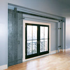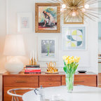 Enclosed dining room - mid-sized contemporary medium tone wood floor and beige floor enclosed dining room idea in New York with gray walls — Houzz