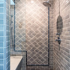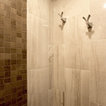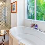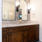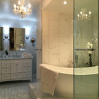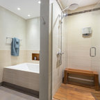 Transitional Masterbath with large sink, custom tiled shower and sitting areaTransitional Bathroom